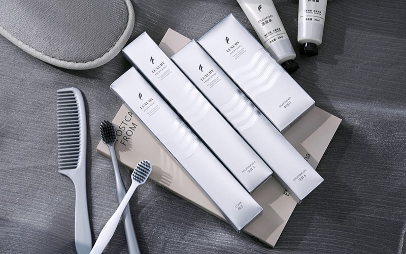 Về bao bì, phân khúc 5 sao sử dụng hộp giấy cứng cao cấp, vỏ hộp sấy hoặc hộp giấy in ấn họa tiết ép nhũ. Chi phí cho các loại vỏ hộp này thường cao hơn (ví dụ hộp cứng khoảng 500 VNĐ/hộp) nhưng bảo vệ sản phẩm tuyệt đối và tạo hình ảnh chuyên nghiệp. Đôi khi, khách sạn 5 sao còn đặt làm hộp đựng bàn chải đôi (dental kit cho 2 người) để tối ưu sự tiện lợi.