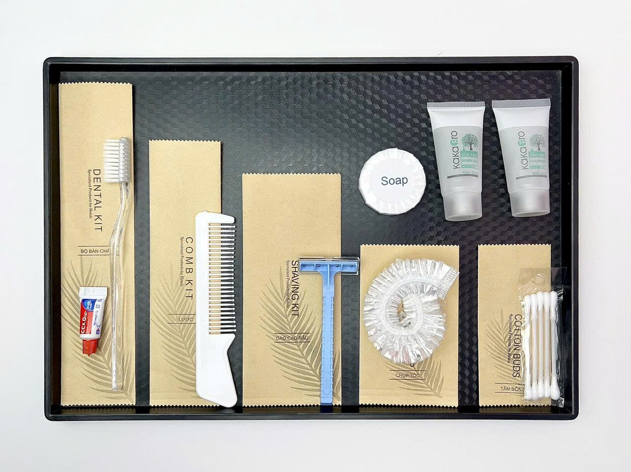 Đồ tiêu hao (Dry Amenities): Bàn chải, lược và dao cạo đều là những sản phẩm chất lượng (như dòng Dorco, bàn chải cước mềm), đảm bảo công năng sử dụng thực tế chứ không chỉ để trưng bày.