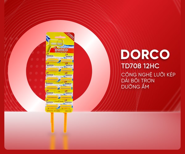 | Dorco TD708 12HC | 2 | Lưỡi siêu bén, vỉ 12 chiếc | Có | Chống trượt | Vàng |