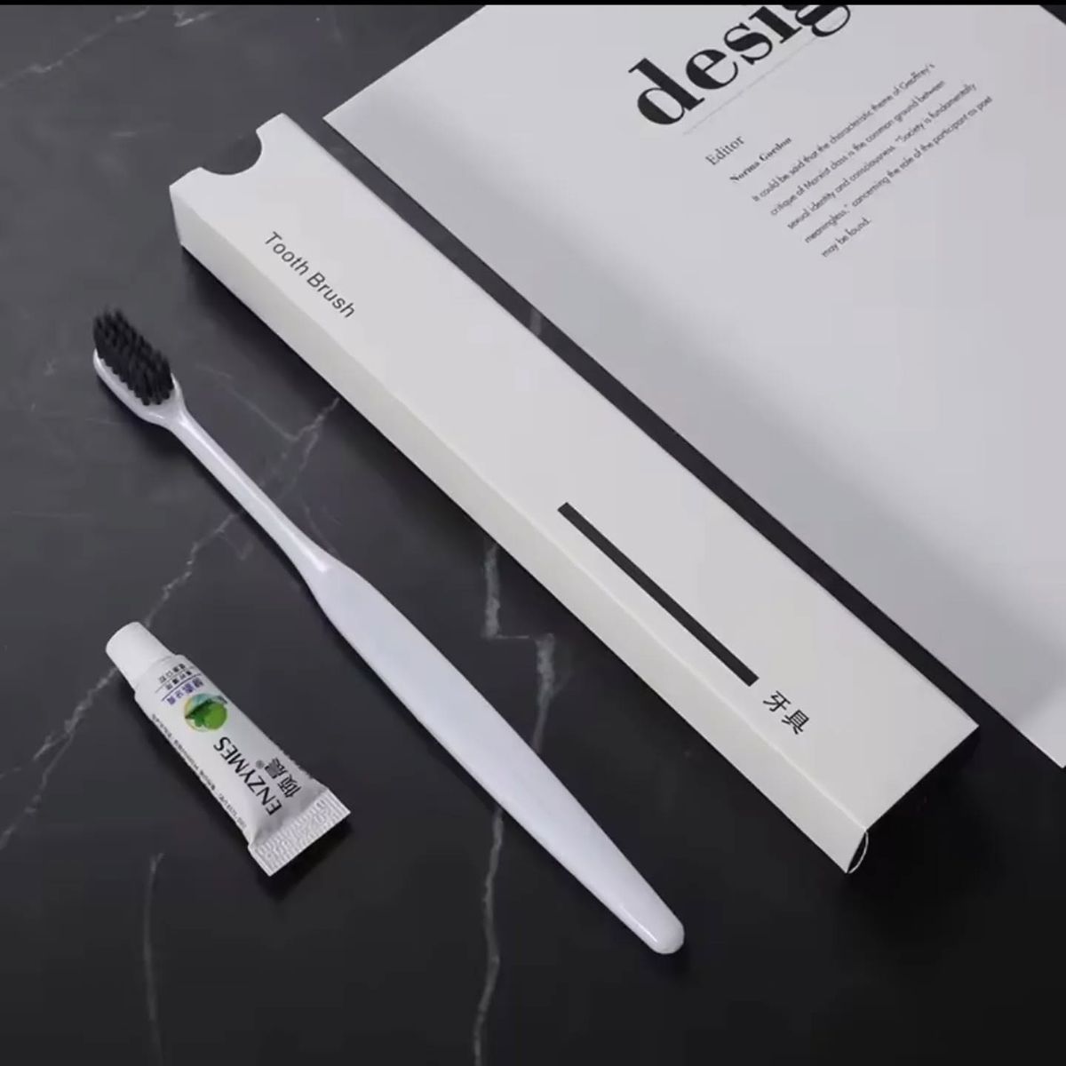 - Hình ảnh thương hiệu: Một bộ dental kit được đặt trong hộp giấy in logo sắc nét, với bàn chải và tuýp kem có thiết kế tương đồng, tạo ra một hình ảnh cực kỳ chuyên nghiệp và chỉn chu. Nó cho thấy khách sạn quan tâm đến từng chi tiết nhỏ nhất trong trải nghiệm của khách hàng, từ đó để lại ấn tượng tích cực và sâu sắc.