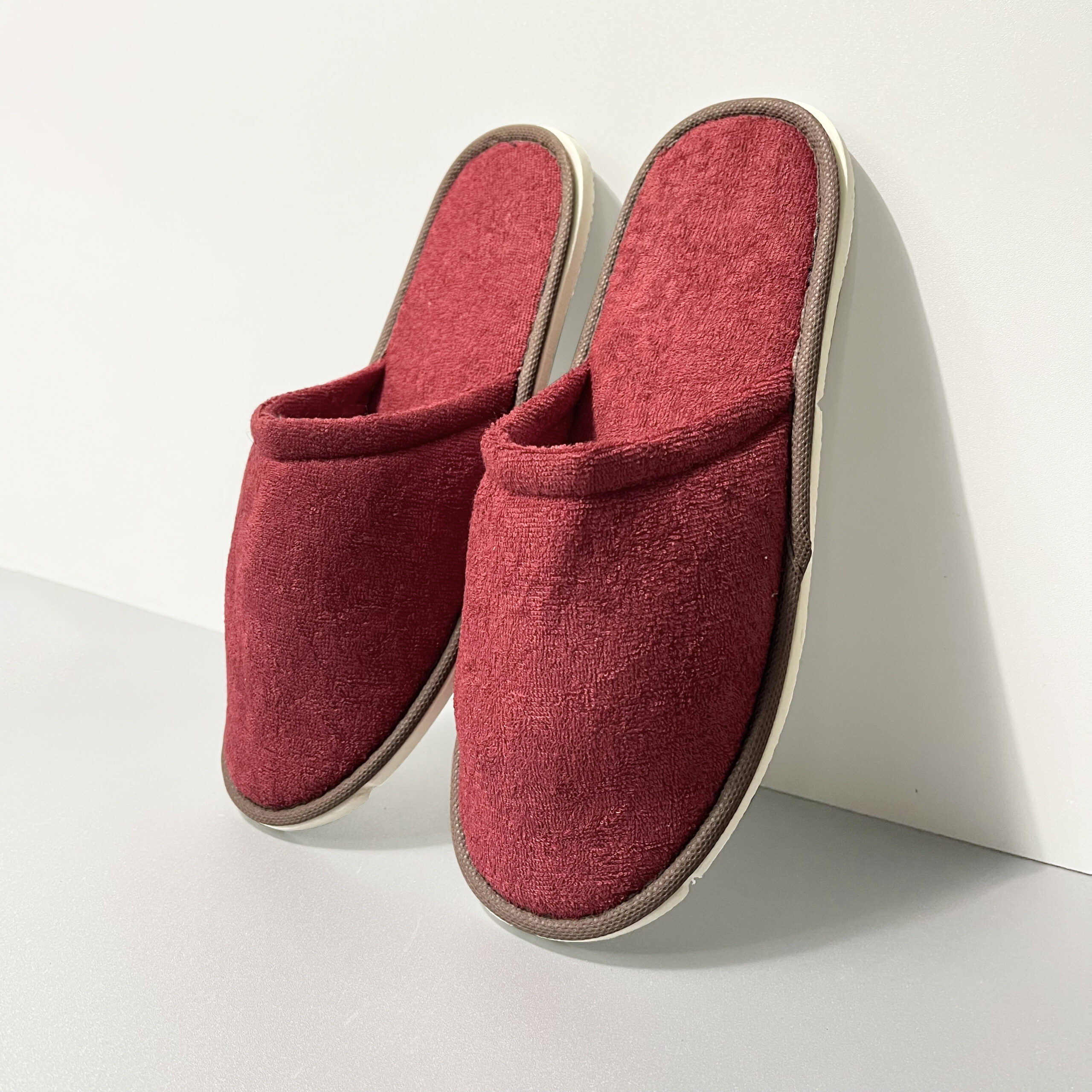 - Dép vải nhung (Velvet): Chất liệu nhung mang lại vẻ ngoài sang trọng, bóng bẩy và cảm giác mềm mượt, ấm áp. Loại dép này thường được lựa chọn cho các phòng VIP hoặc trong các khách sạn mang phong cách cổ điển, hoàng gia vào mùa đông.
