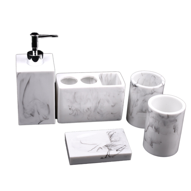 • Chất liệu chính: Nhựa Resin (Giả đá Marble) + Vòi bơm Inox/Mạ Chrome