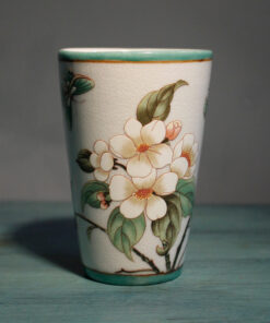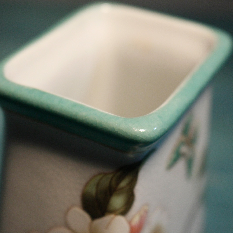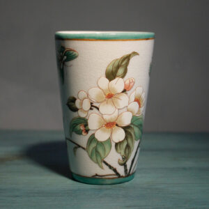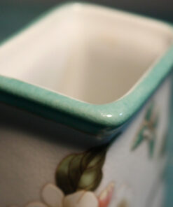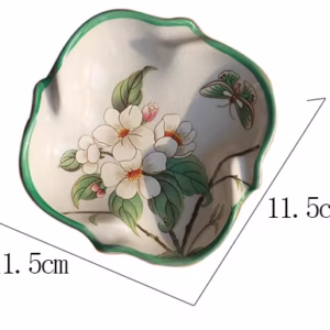 • Màu sắc: Trắng kem, họa tiết hoa, viền xanh olive