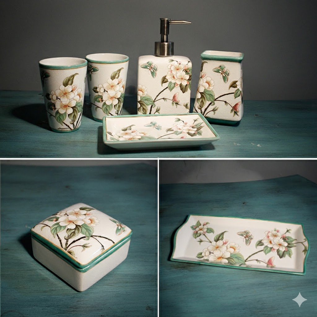 Set nhà tắm sứ cao cấp Olive Uk hoạ tiết hoa mã BBDSTDB 11