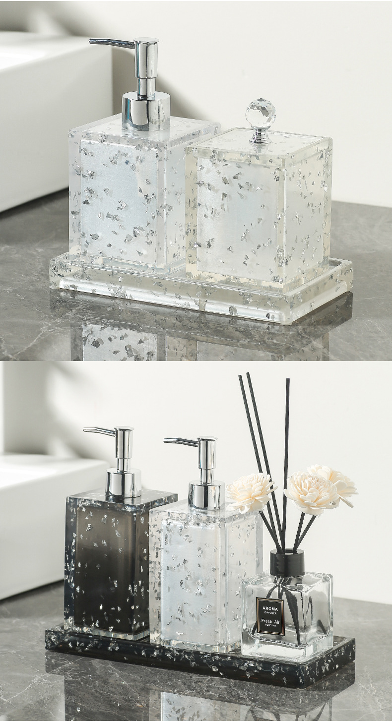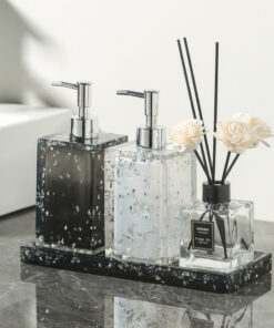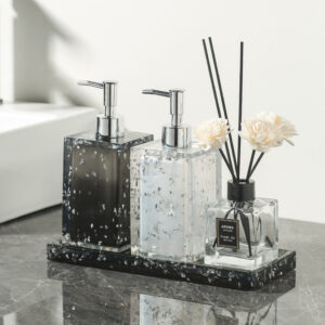 Sản phẩm phát huy vẻ đẹp tối đa khi được setup đồng bộ trọn bộ (Bình 280ml, Bình 500ml, Cốc súc miệng, Hộp tăm bông) và đặt trên Khay ABS (20cm hoặc 26cm) đi kèm. Giải pháp này giúp tổ chức không gian lavabo ngăn nắp, tạo sự chuyên nghiệp tối đa và nhất quán. Đây là một phần quan trọng của bộ đồ dùng khách sạn cao cấp.