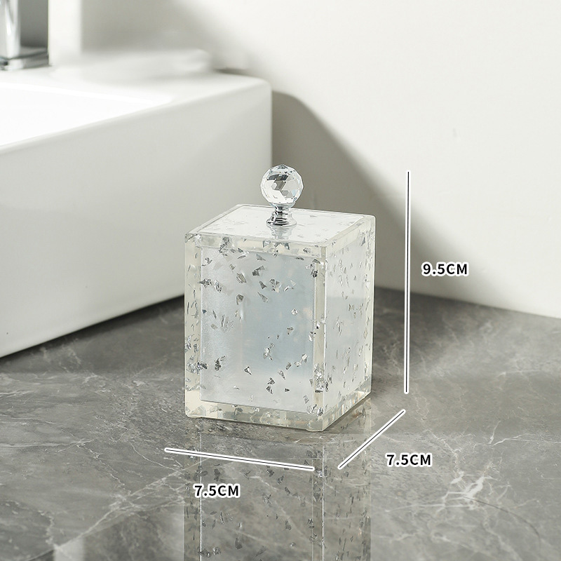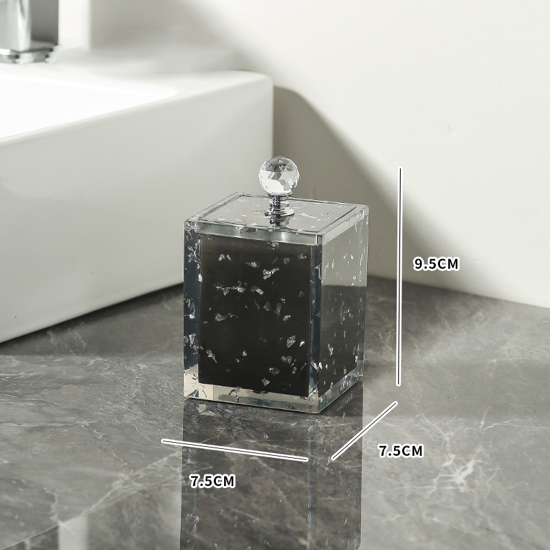 | Hộp tăm bông | (Ước tính: 7.5 x 7.5 x 9.5 cm) | Đen / Trong suốt | – |