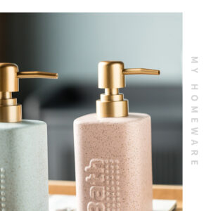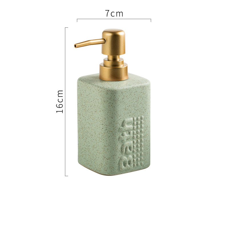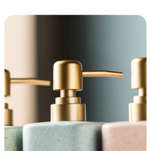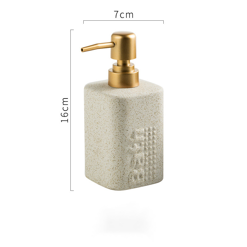 • Chất liệu chính: Gốm sứ cao cấp (Thân) + Vòi bơm mạ PVD (Vàng mờ)
