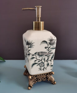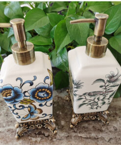 Bình đựng dầu gội sữa tắm khách sạn chất liệu gốm sứ mã BDSTDB 17 là dòng sản phẩm amenities cao cấp, mang đậm phong cách Cổ điển (Classic) và Tân cổ điển (Neo-classic). Sản phẩm gây ấn tượng mạnh mẽ với họa tiết hoa văn tinh xảo (với 4 tùy chọn độc đáo) trên nền gốm sứ trắng kem, kết hợp cùng vòi bơm và chân đế rời bằng kim loại mạ đồng (Bronze) vương giả.
