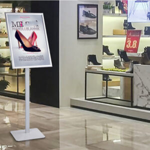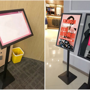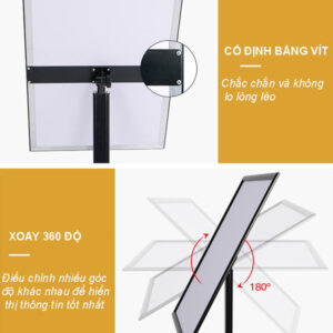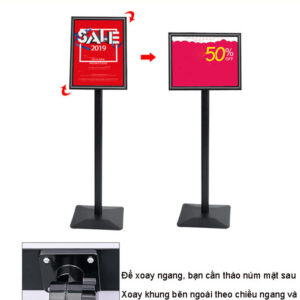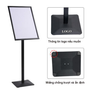 Với tổng chiều cao 123cm, khung bảng A3 được đặt ở vị trí ngang tầm mắt của đa số khách hàng, giúp tối ưu hóa khả năng đọc thông tin. Kích thước A3 lý tưởng để hiển thị poster chào mừng, sơ đồ chỉ dẫn, hoặc thực đơn đặc biệt một cách rõ ràng, thu hút.