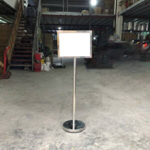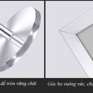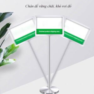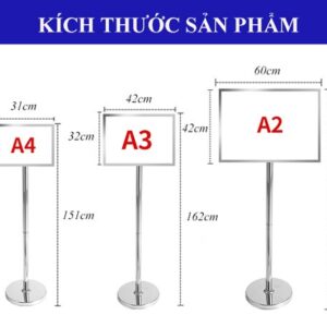 Trả lời: Sản phẩm được thiết kế với chân đế đặc, nặng (Ø32cm cho A3, Ø35cm cho A2), tạo trọng tâm thấp. Cấu trúc này đảm bảo độ vững chãi tối đa, rất khó lật đổ do va chạm nhẹ.