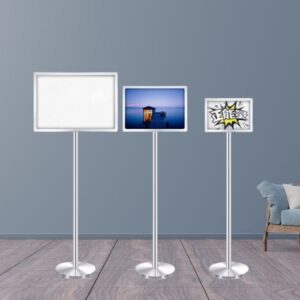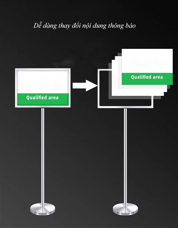 Trả lời: Rất đơn giản. Khung A2/A3 được thiết kế dạng khe đút (slide-in) hoặc viền lật (snap frame). Bạn chỉ cần trượt tờ thông báo mới vào cả hai mặt, thao tác chỉ mất vài giây.