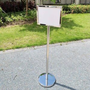 Bảng menu nâng hạ 2 mặt mã ESI0A01-02-06 là một bảng menu khách sạn di động. Chân đế tròn (Ø32cm cho A3, Ø35cm cho A2) được làm từ Inox có lõi nặng, tạo trọng tâm thấp, cực kỳ vững chãi, chống lật đổ do va chạm nhẹ hoặc gió lùa tại sảnh.