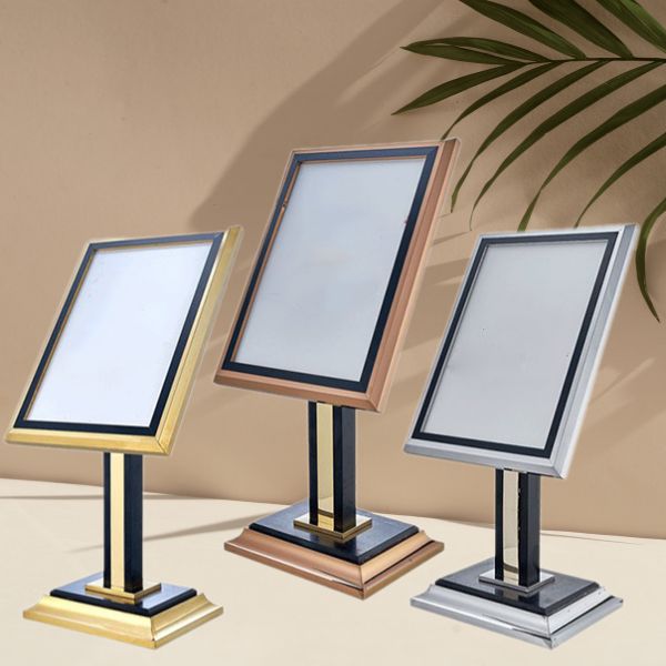 Bảng welcome inox mạ vàng mã TQTA2V là giải pháp biển báo thông tin cao cấp, được thiết kế chuyên biệt cho sảnh khách sạn 5 sao, trung tâm hội nghị, và nhà hàng sang trọng. Sản phẩm sở hữu phom dáng bề thế, với khung bảng cỡ lớn (60x80cm) và chân đế chữ nhật (60x40cm), mang lại vẻ đẹp uy nghi, đẳng cấp.
