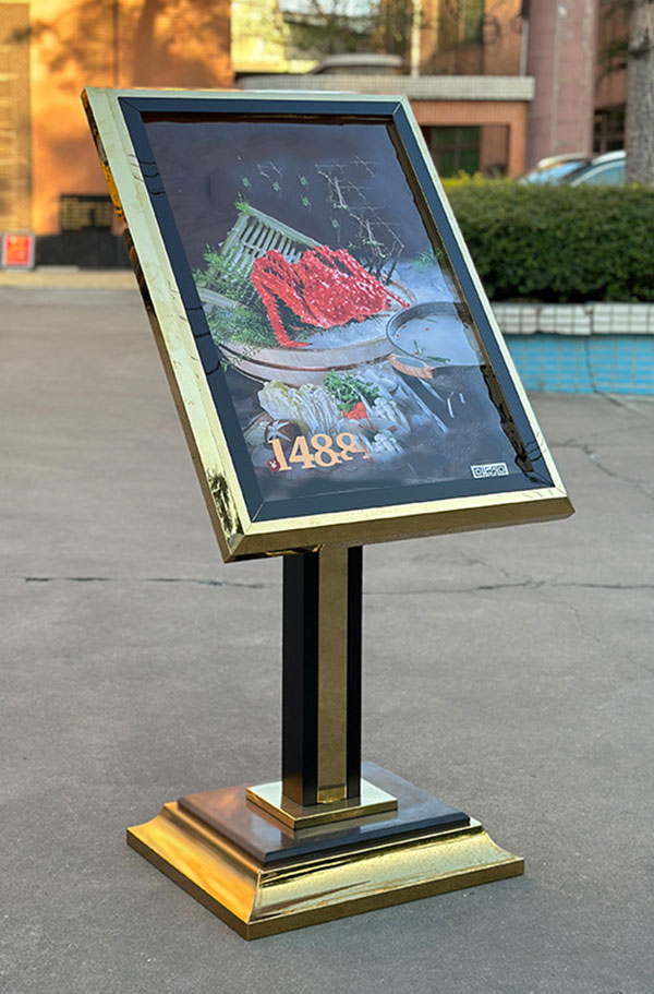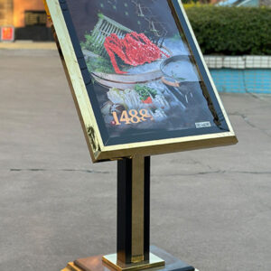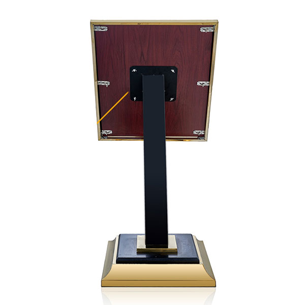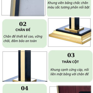 Với chiều cao tổng thể 120cm, mặt Bảng welcome inox mạ vàng mã TQTA2V được đặt ở vị trí ngang tầm mắt của đa số khách hàng, giúp tối ưu hóa khả năng đọc thông tin mà không cần cúi thấp hay ngước nhìn.