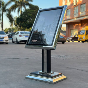 Giá trị cốt lõi của TQTA2V là khả năng chịu tải và sự vững chãi tuyệt đối. Với trọng lượng 15kg (kết hợp Inox, Thép và Đá), đây là một bảng welcome không chỉ để chào mừng mà còn là một điểm nhấn “statement piece” bề thế. Khung bảng lớn (lòng 47x67cm) lý tưởng để hiển thị poster, sơ đồ sự kiện một cách ấn tượng.