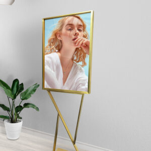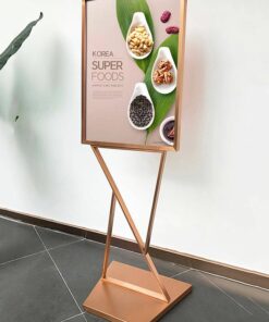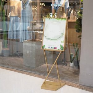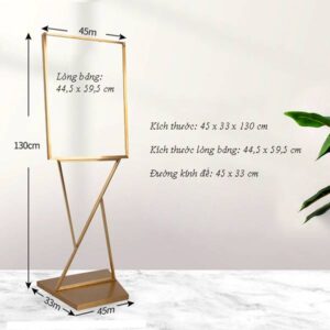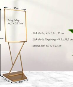 Bảng welcome inox mạ vàng mã TQTA2VD là giải pháp biển báo thông tin cao cấp, được thiết kế chuyên biệt cho sảnh khách sạn 5 sao và trung tâm hội nghị. Sản phẩm sở hữu phom dáng bề thế, với khung bảng cỡ lớn (chuẩn A2) và chân đế chữ nhật (45x33cm), mang lại vẻ đẹp sang trọng, vững chãi.