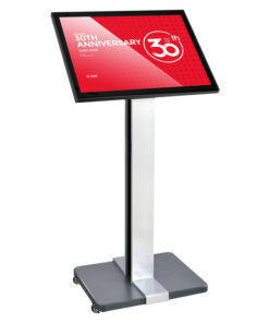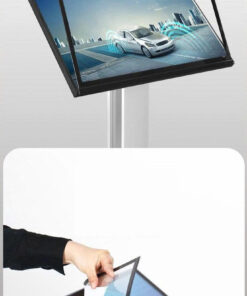 Phiên bản Thép không gỉ (Inox): Đây là dòng biển đứng chủ lực với chiều cao từ 114cm đến 130cm. Khung Inox được xử lý đánh bóng (Polished) hoặc mạ màu PVD (Vàng/Vàng hồng), tạo nên sự sang trọng vĩnh cửu, không bị hoen gỉ theo thời gian.