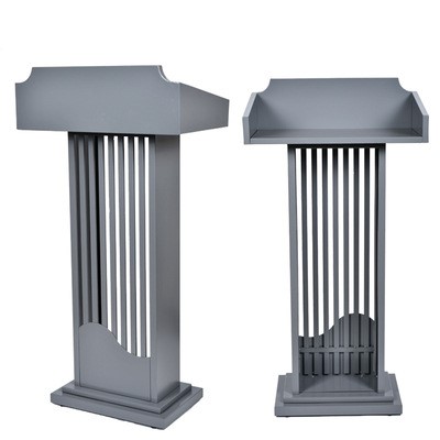 Sản phẩm nhập khẩu này giữ được vẻ đẹp trang trọng của màu gỗ cánh gián nhưng không bị lỗi thời nhờ các chi tiết inox vàng. Kích thước 47 x 47 x 110 cm khá nhỏ gọn, phù hợp với các phòng họp hoặc sân khấu có diện tích vừa phải.