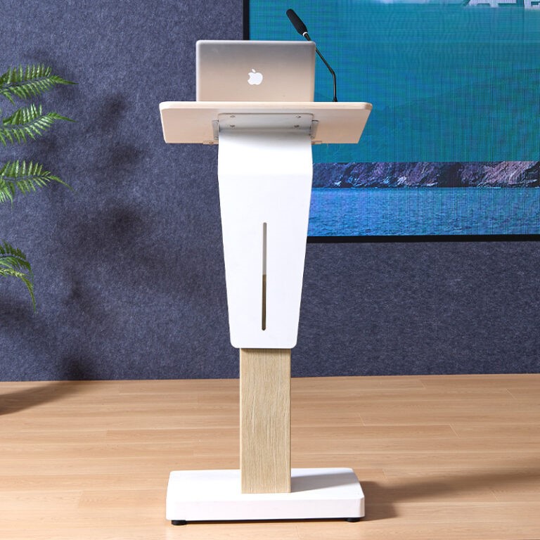 - Linh hoạt và phù hợp không gian: Tính linh hoạt được thể hiện qua các mẫu bục phát biểu có bánh xe, giúp dễ dàng di chuyển giữa các không gian khác nhau. Tùy thuộc vào mục đích, bục phát biểu được thiết kế để tương thích: hội trường lớn cần bục phát biểu trang nghiêm, kích thước bề thế; trong khi phòng họp công ty lại ưu tiên các mẫu bục phát biểu hiện đại, thanh lịch.