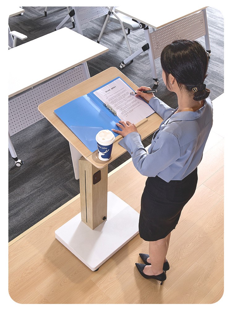 - Điều chỉnh độ cao tự động: Tính năng quan trọng nhất, cho phép nâng hạ mặt bục bằng mô-tơ điện. Chỉ với một nút bấm, bục có thể thay đổi chiều cao để phù hợp hoàn hảo với vóc dáng của bất kỳ diễn giả nào, từ đó đảm bảo tư thế thoải mái và chuyên nghiệp nhất.