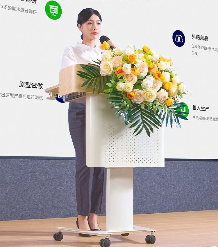 Khi một diễn giả bước lên một chiếc bục thông minh, có thể tự điều chỉnh độ cao, tương tác với màn hình cảm ứng thay vì dùng giấy, hình ảnh của sự kiện ngay lập tức được nâng lên một tầm cao mới. Nó cho thấy sự chuẩn bị kỹ lưỡng và sự tôn trọng tuyệt đối dành cho người tham dự.