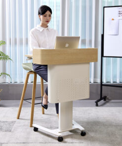 Thiết kế hiện đại của bục không bao giờ lỗi mốt, phù hợp với xu hướng nội thất tối giản, sang trọng. Tính linh hoạt thể hiện ở dải độ cao 690-1080mm và bánh xe cơ động, khiến nó trở thành "tắc kè hoa" của mọi hội trường. Cuối cùng, độ bền của khung sắt tĩnh điện và mặt gỗ MDF Melamine đảm bảo sản phẩm hoạt động ổn định trong nhiều năm mà không xuống cấp.
