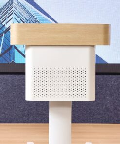 Bục phát biểu BPBTM 01 sở hữu phong cách thiết kế tối giản nhưng sang trọng, tuân theo trường phái hiện đại (Modernism), tập trung vào công năng và loại bỏ các chi tiết rườm rà. Toàn bộ sản phẩm là sự kết hợp hài hòa giữa hai tông màu chủ đạo: màu trắng của khung sắt tĩnh điện và màu vân gỗ tự nhiên của mặt bục, tạo nên một tổng thể trang nhã, dễ dàng hòa hợp với mọi phong cách nội thất.