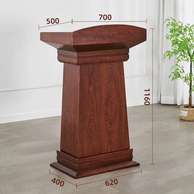 Một chiếc bục phát biểu gỗ công nghiệp tiêu chuẩn thường bao gồm 3 bộ phận chính: mặt bục (nơi để tài liệu), thân bục (thường vát nghiêng hoặc thẳng) và chân đế (đảm bảo sự vững chãi).