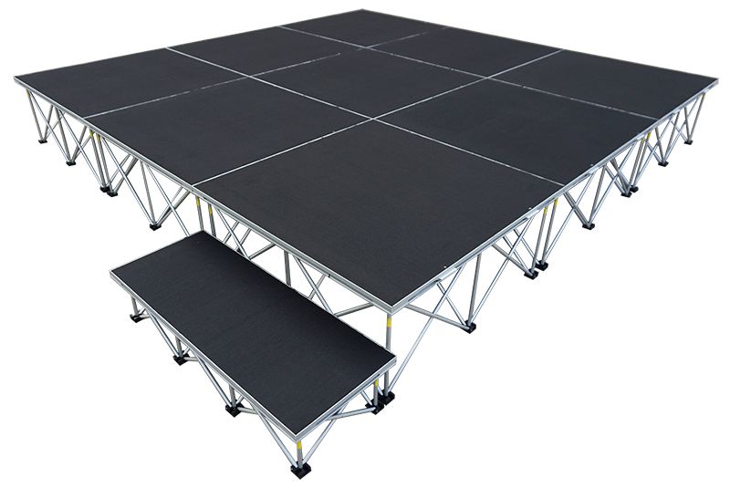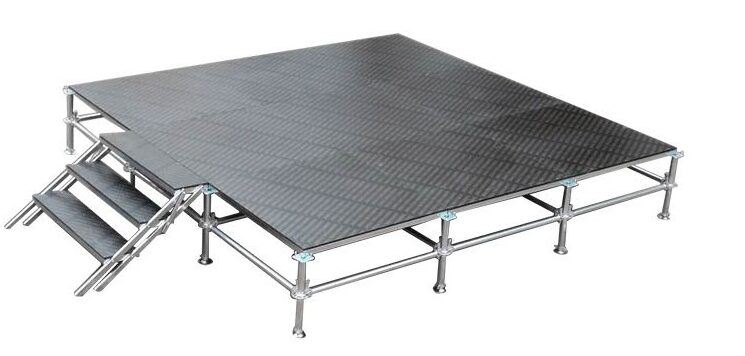 - Triển khai nhanh: Việc thiết lập cực kỳ nhanh chóng, chỉ cần mở ra, khóa chốt an toàn và liên kết các bục lại với nhau (nếu cần sân khấu lớn).