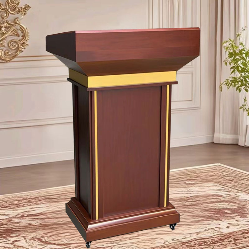 Bục để tượng Bác gỗ nguyên khối màu đỏ rượu vang và viền vàng – Mã BTB07