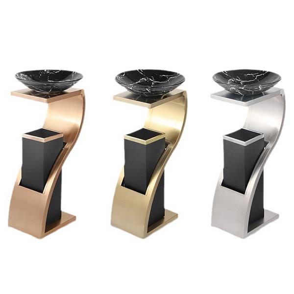 Thùng rác gạt tàn ETFZA00 là giải pháp vệ sinh cao cấp, gây ấn tượng thị giác mạnh mẽ với thiết kế hình chữ Z (Z-shape) độc đáo, phá vỡ mọi khuôn mẫu truyền thống. Sản phẩm là sự kết hợp tinh tế giữa khung Inox cao cấp (với 2 tùy chọn màu Trắng hoặc Đồng) và khay gạt tàn bằng thủy tinh đen tiện lợi.