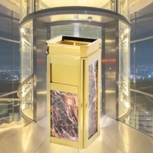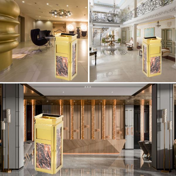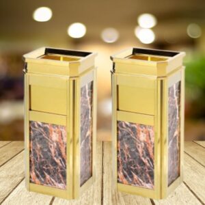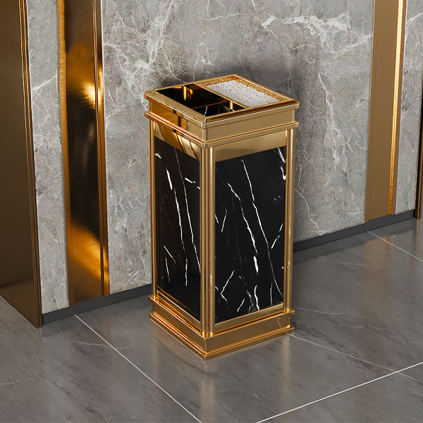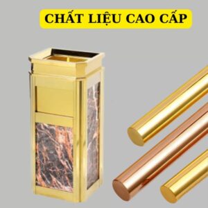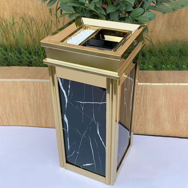 Thùng rác gạt tàn inox vàng đá đen HTG-14A-B2