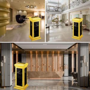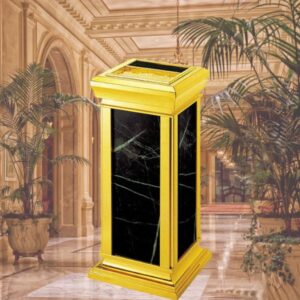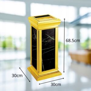 Thùng rác inox mạ vàng đá đen có gạt tàn HTG-17A-B2