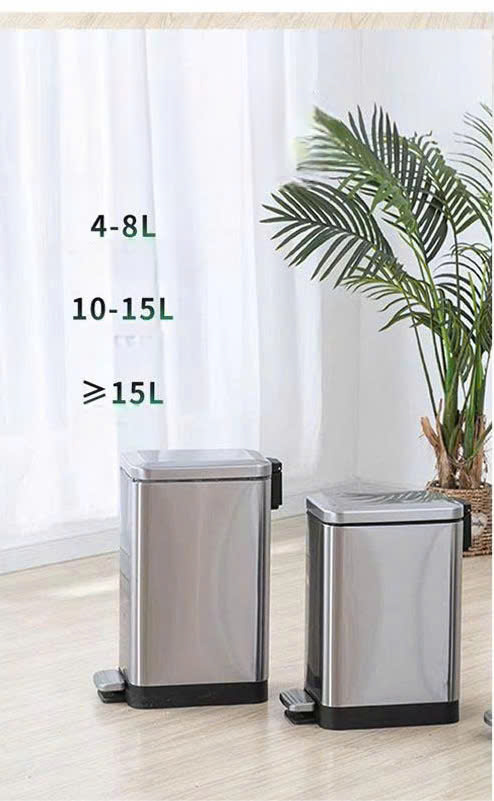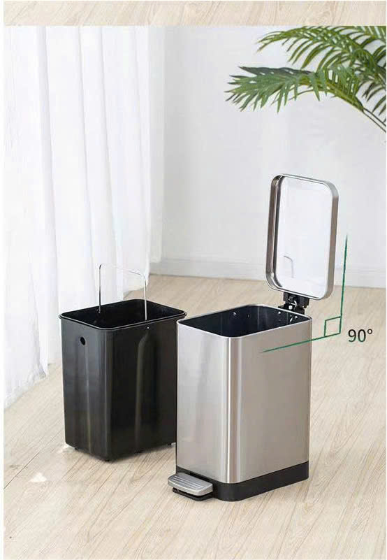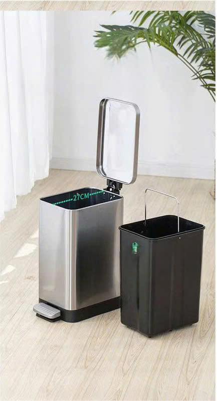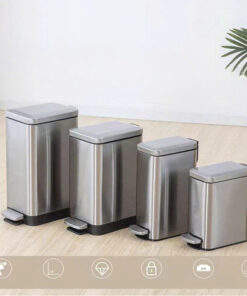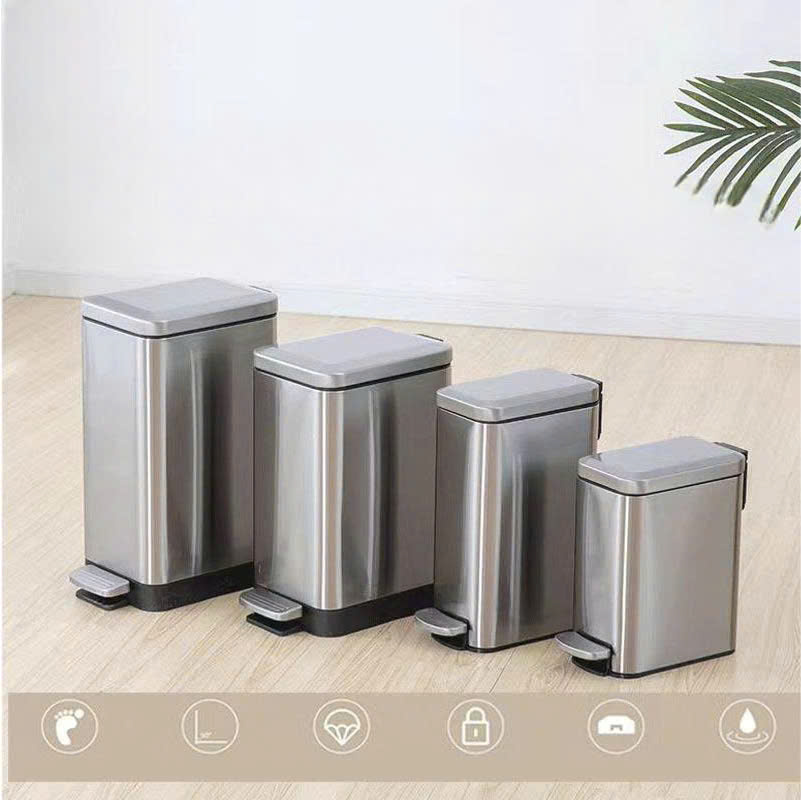 Sở hữu bộ khung vỏ bằng thép không gỉ (Inox) dày dặn cùng thiết kế hình trụ vuông thon gọn, mẫu thùng rác inox đạp chân này dễ dàng đặt vừa vặn vào các góc tường, khe hẹp giữa tủ và bàn. Đây là lựa chọn lý tưởng để duy trì sự gọn gàng, sạch sẽ và sang trọng cho mọi công trình.