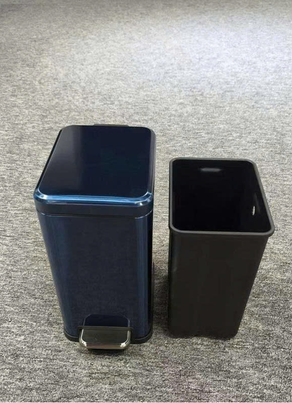 Ruột thùng: Bên trong là một xô đựng rác bằng nhựa PP dày dặn, có quai xách tiện lợi. Thiết kế này giúp ngăn nước rỉ rác chảy ra sàn nhà và giúp nhân viên buồng phòng thu gom rác nhanh chóng, sạch sẽ mà không cần mang cả vỏ thùng đi.