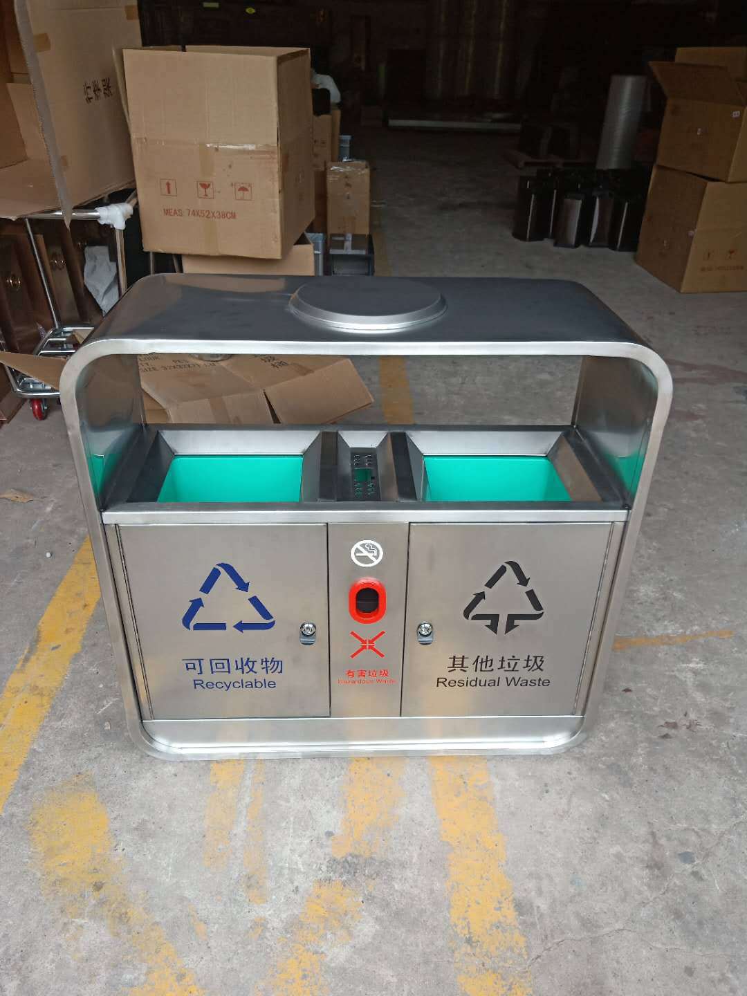 Với kích thước lớn và khả năng phân loại rác ưu việt, thùng rác ngoài trời thép không gỉ mã TRKS03 là lựa chọn hàng đầu cho các khu vực có mật độ người qua lại cao.