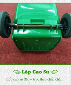 Điểm nhấn quan trọng của thùng rác nhựa HDPE 120L mã HTN120-G1 là hệ thống 2 bánh xe cao su đặc đường kính 19cm. Trục bánh xe bằng thép không gỉ giúp thùng di chuyển êm ái, linh hoạt trên mọi địa hình, từ sàn gạch nhẵn đến đường nhựa gồ ghề.