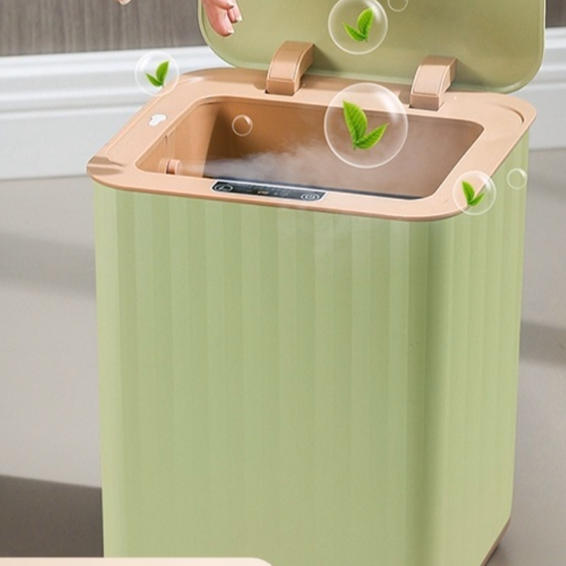 Thùng rác thông minh khử mùi được trang bị thêm bộ phát Ozone hoặc ngăn chứa sáp thơm để trung hòa mùi hôi của rác thải hữu cơ. Tính năng này cực kỳ quan trọng đối với các thùng rác đặt trong phòng kín hoặc nhà bếp, nơi mùi thực phẩm dễ phân hủy.