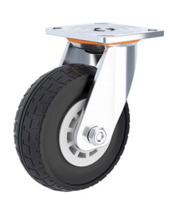Xe trang bị bánh xe cao su đặc (chịu lực), được thiết kế chuyên dụng cho xe đẩy hành lý khách sạn. Bánh xe di chuyển êm ái, không gây tiếng ồn và lướt nhẹ nhàng trên cả sàn thảm và sàn đá, không làm hỏng bề mặt sàn.
