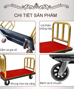 Xe đẩy hành lý khách sạn inox vàng HTD22