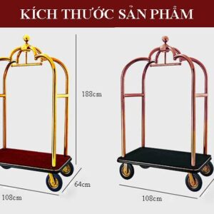 Xe đẩy hành lý khách sạn inox HTGXL01 là giải pháp vận chuyển hành lý chuyên nghiệp, được xem là biểu tượng cho sự sang trọng và đẳng cấp của các khách sạn 5 sao. Sản phẩm sở hữu thiết kế “birdcage” (lồng chim) cổ điển, bề thế (cao 188cm) với chất liệu 100% Inox cao cấp và hai tùy chọn hoàn thiện: Màu Vàng (Gold) lộng lẫy hoặc Màu Vàng Hồng (Rose Gold) thời thượng.
