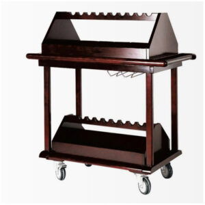 Sản phẩm này là một chi tiết quan trọng trong bộ thiết bị khách sạn hạng sang, và là một mẫu xe đẩy phục vụ rượu thể hiện sự chuyên nghiệp tối đa.
