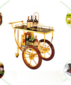 Điểm nhấn đắt giá của HTIGX41-R là thiết kế bánh xe lớn (vành gỗ, khung inox vàng), biến xe đẩy thành một điểm nhấn vương giả, thu hút mọi ánh nhìn. Đây là một xe đẩy rượu cao cấp lý tưởng, nâng tầm dịch vụ "tableside" (phục vụ tại bàn) và tạo ra một màn trình diễn ấn tượng, chuyên nghiệp ngay trước mắt thực khách.