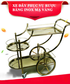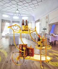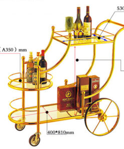 Với thiết kế sang trọng và đa năng, xe đẩy phục vụ rượu mạ vàng HTWY-48 là lựa chọn hoàn hảo cho các dịch vụ 5 sao: