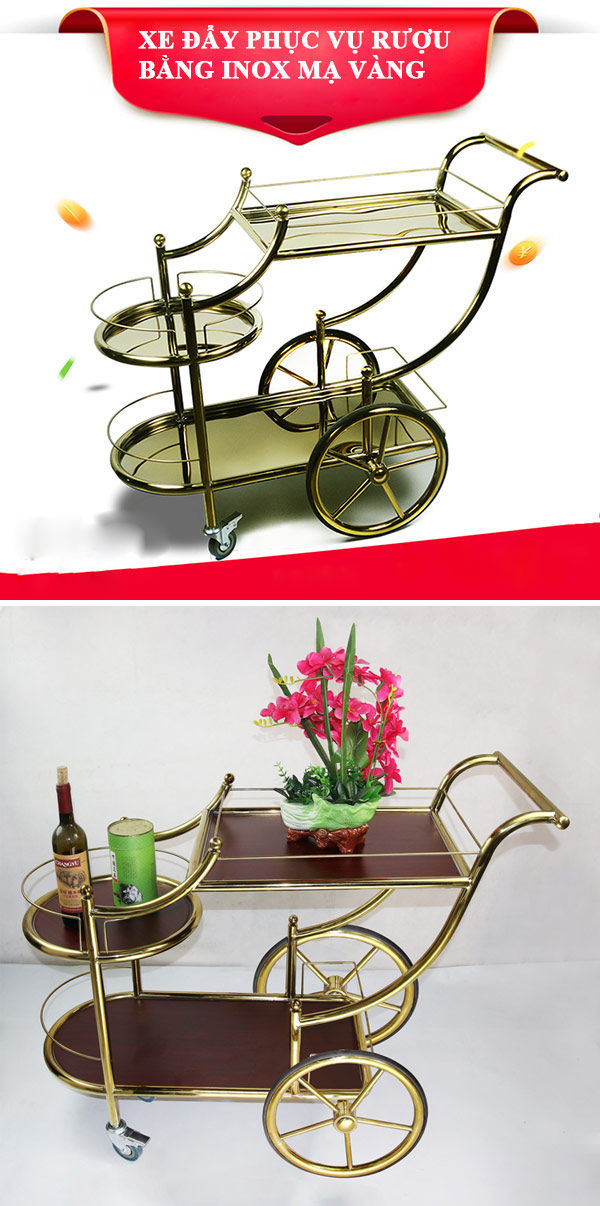 Xe đẩy phục vụ rượu mạ vàng HTWY-48