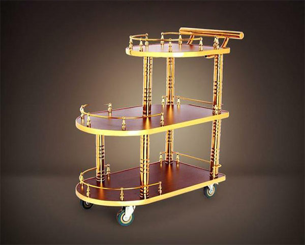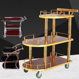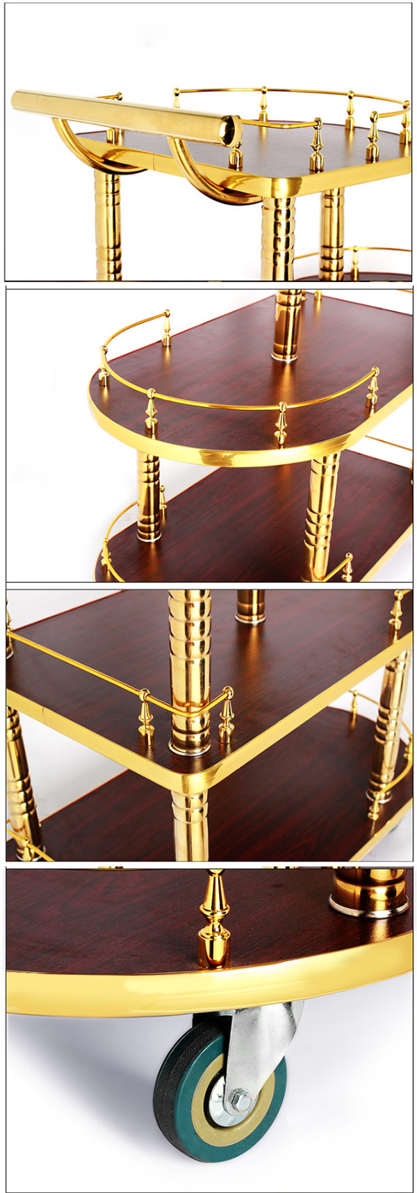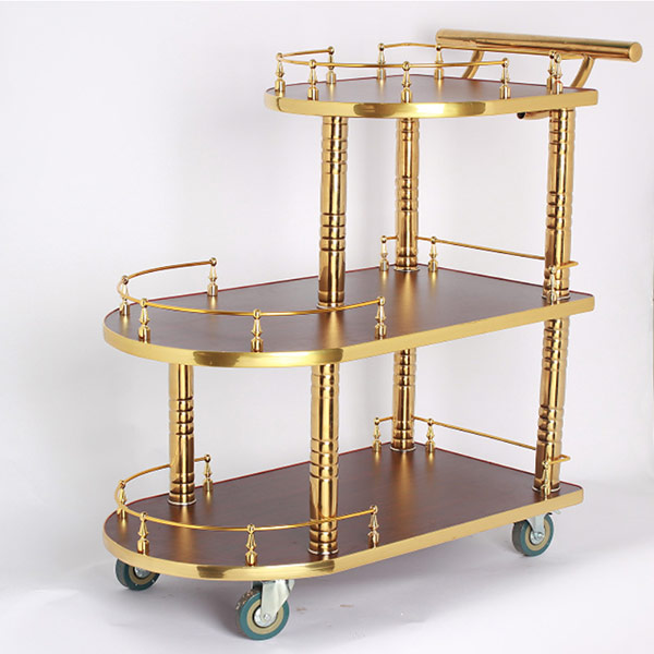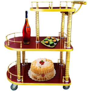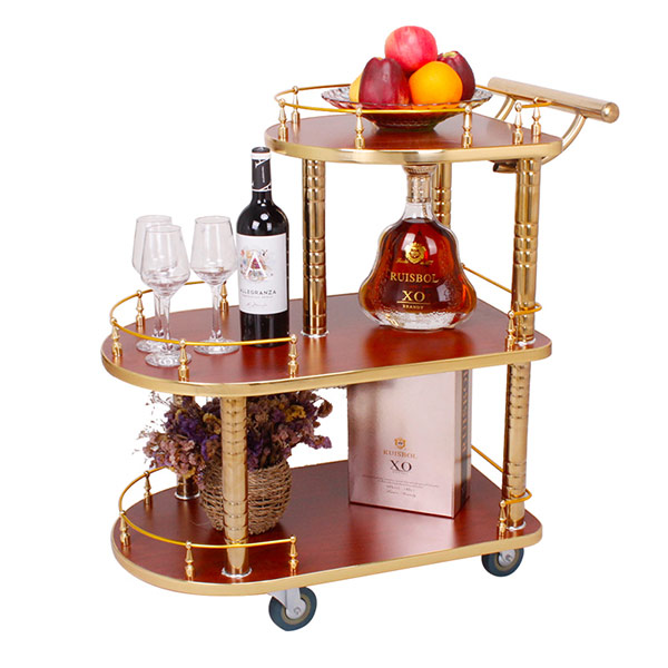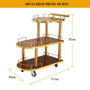 Xe đẩy phục vụ rượu khung inox vàng mặt gỗ HTFW-42