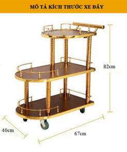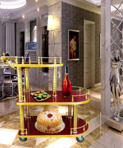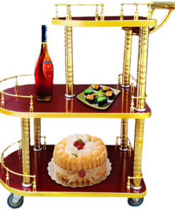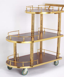 Xe đẩy phục vụ rượu khung inox vàng mặt gỗ HTFW-42 là giải pháp phục vụ F&B cao cấp, mang đậm phong cách cổ điển (classic) và sang trọng. Sản phẩm là sự kết hợp vật liệu tinh tế giữa khung Inox mạ vàng PVD sáng bóng và 3 tầng mặt gỗ màu nâu trầm ấm áp, tạo nên một tổng thể hài hòa, đẳng cấp.