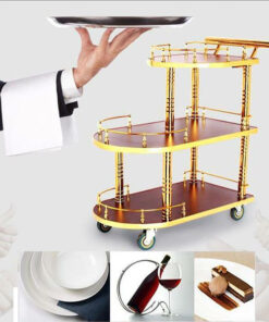 Với thiết kế cổ điển sang trọng và nhỏ gọn, xe đẩy phục vụ rượu khung inox vàng mặt gỗ HTFW-42 là lựa chọn hoàn hảo cho: