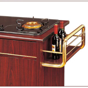 Đây là tính năng đắt giá nhất của HTGX83-B. Bếp ga đơn (thường là bếp cồn hoặc ga mini) được thiết kế âm gọn gàng trên mặt xe, biến xe đẩy thành một “bàn bếp di động” thực thụ. Tính năng này cho phép đầu bếp chế biến hoặc hâm nóng món ăn (như flambé, crepe suzette, súp) ngay tại bàn, tạo ấn tượng thị giác và khứu giác mạnh mẽ cho thực khách.