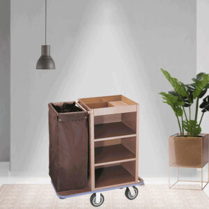 Xe dọn phòng khách sạn HTSX10-F là giải pháp xe làm buồng phòng chuyên nghiệp, sở hữu thiết kế nhỏ gọn (93cm) và khung thép phun tĩnh điện màu nâu độc đáo. Màu nâu này giúp xe mang lại cảm giác ấm cúng, sang trọng, dễ dàng hòa hợp với các không gian nội thất cổ điển, ấm cúng.